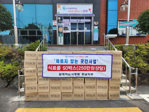 ÇÔ²²ÇÏ´Â »ç¶û¹ç °æ³²ÁöºÎ, Ãë¾à°èÃþ¿¡ ½Ä·áǰ 50»óÀÚ ±âºÎ