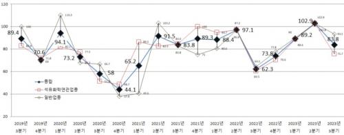 [½Åµ¿¾Æ¹æ¼Û=±è±â³² ±âÀÚ] ¿©¼ö»ó°øÈ¸ÀǼÒ(ȸÀå ÀÌ¿ë±Ô)°¡ Áö¿ª ³» 186°³ Á¦Á¶¾÷ü¸¦ ´ë»óÀ¸·Î 2023³â 3/4ºÐ±â ±â¾÷°æ±âÀü¸ÁÁ¶»ç(BSI) Àü¸ÁÄ¡¸¦ ³»³ù´Ù.(ÀÀ´ä·ü 36.6%) Á¶»ç°á°ú¿¡ µû¸£¸é 2023³â 3/4ºÐ±â ±â¾÷°æ±âÀü¸ÁÁö¼ö(BSI)´Â¡®83.8¡¯·Î Á¶»çµÇ¾ú´Âµ¥, ÀÌ´Â ¡¦