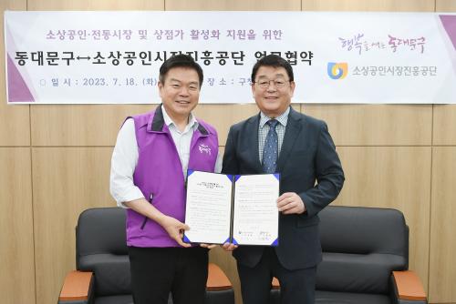 [½Åµ¿¾Æ¹æ¼Û µ¿´ë¹®±¸=À̽ŵ¿±âÀÚ]µ¿´ë¹®±¸¿Í ¼Ò»ó°øÀνÃÀåÁøÈï°ø´Ü(ÀÌ»çÀå ¹Ú¼ºÈ¿)ÀÌ µ¿´ë¹®±¸ »ó±Ç Ȱ¼ºÈ­¸¦ À§ÇØ ¼ÕÀ» Àâ¾Ò´Ù. µ¿´ë¹®±¸´Â 7¿ù 18ÀÏ µ¿´ë¹®±¸Ã»¿¡¼­ ¼Ò»ó°øÀνÃÀåÁøÈï°ø´Ü(ÀÌÇÏ ¼ÒÁø°ø)°ú ½ÃÀ塤»óÁ¡°¡ Ȱ¼ºÈ­¸¦ À§ÇÑ ¾÷¹«Çù¾àÀ» ü°áÇß´Ù°í ¹àÇû´Ù¡¦