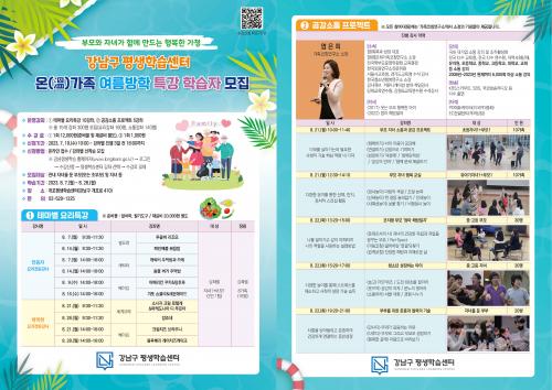 [½Åµ¿¾Æ¹æ¼Û °­³²=À̽ŵ¿±âÀÚ]°­³²±¸°¡ ÇлýµéÀÌ ¾ËÂù ¿©¸§¹æÇÐÀ» º¸³¾ ¼ö ÀÖµµ·Ï, °¡Á· ¼ÒÅë ±Û·Î¹ú üÇè, °úÇÐÀÎÀç ¾ç¼º, Àμº±³À°, ¼ºÀûÇâ»ó 5°³ ºÐ¾ß 9°³ ¹æÇÐ ÇÁ·Î±×·¥À» ¿î¿µÇÑ´Ù. À̹ø ¹æÇп£ ¿ì¸® °¡Á· ´õ °¡~±îÀÌ, °³Æ÷Æò»ýÇнÀ¼¾ÅÍ¿¡¼­´Â ±¸¹Î 300¸íÀ» ´ë»ó¡¦