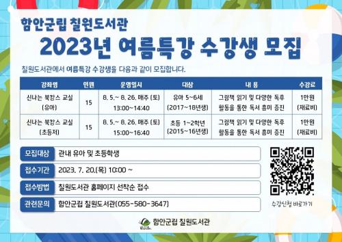 ÇԾȱº¸³ Ä¥¿øµµ¼­°ü, À¯¾Æ¡¤Ãʵî ÀúÇг⠴ë»ó 2023 ¿©¸§Æ¯°­ ¼ö°­»ý ¸ðÁý