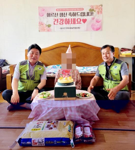 [½Åµ¿¾Æ¹æ¼Û ÇÔ¾È=À̽ŵ¿±âÀÚ]ÇԾȱº ¹ý¼ö¸éÁö¿ª»çȸº¸ÀåÇùÀÇü(À§¿øÀå ±èÀ±¼ö)´Â Áö³­ 20ÀÏ »ýÀÏÀ» ¸ÂÀÌÇÑ È¦·Î ¾î¸£½ÅÀÇ ´ì¿¡ Á÷Á¢ ã¾Æ°¡ ¡®Áñ°Å¿î »ý½Å³¯¡¯ ÃàÇÏ ÄÉÀÌÅ©¸¦ Àü´ÞÇß´Ù. ¡®Áñ°Å¿î »ý½Å³¯¡¯Àº ¹ý¼ö¸éÁö¿ª»çȸº¸ÀåÇùÀÇüÀÇ Æ¯È­»ç¾÷À¸·Î ¹«¿¬°í ¶Ç´Â ¡¦