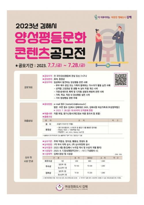 [½Åµ¿¾Æ¹æ¼Û´º½º=¾çÇýÁö±âÀÚ] ±èÇØ½Ã(½ÃÀå ȫſë)´Â ¾ç¼ºÆòµî ÁÖ°£(9. 1. ~ 9. 7.)À» ¸ÂÀÌÇÏ¿© ¾ç¼ºÆòµî ¹®È­¸¦ È®»êÇÏ°í ¿©¼ºÄ£È­µµ½Ã ±èÇØ¿¡ ´ëÇÑ ½Ã¹ÎÀÇ Àνİú °ü½ÉÀ» ³ôÀ̱â À§ÇÑ ¾ç¼ºÆòµî ¹®È­ ÄÜÅÙÃ÷ °ø¸ðÀüÀ» 7¿ù 7ÀϺÎÅÍ 28ÀϱîÁö °³ÃÖÇÑ´Ù°í ¹àÇû´Ù. À̹ø¡¦