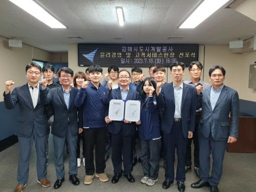 [½Åµ¿¾Æ¹æ¼Û´º½º=¾çÇýÁö±âÀÚ] ]¡à ±èÇØ½Ãµµ½Ã°³¹ß°ø»ç´Â 23³â 7¿ù 18ÀÏ ¿ÀÈÄ 16:00 °ø»ç ¼ÒȸÀǽǿ¡¼­ ÀÓ¿ø ¹× ÀüºÎ¼­ÀåÀÌ Âü¼®ÇÑ °¡¿îµ¥ ¡®À±¸®ÇåÀå ¹× °í°´¼­ºñ½ºÇåÀå ¼±Æ÷½Ä¡¯À» °³ÃÖÇß´Ù. ¡à À̳¯ ¼±Æ÷½ÄÀº À±¸®ÇåÀå¿¡ ´ëÇÑ ½ÇõÀ» °áÀÇÇÏ´Â À±¸®ÇåÀå ¹× °í°´¼­ºñ¡¦