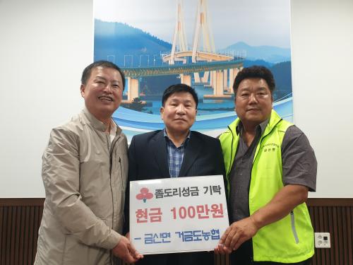 [½Åµ¿¾Æ¹æ¼Û=¹Ú±¤¿Á±âÀÚ] °íÈﱺ ±Ý»ê¸é(¸éÀå Á¤±¹±Õ)Àº 7¿ù 26ÀÏ »ç¶ûÀÇ Á»µµ¸® ±âºÎ±Ý Àü´Þ½ÄÀ» °¡Á³´Ù. À̳¯ Çà»ç¿¡¼­ °Å±Ýµµ³óÇù(Á¶ÇÕÀå ÃߺÎÇà)Àº »ç¶û ³ª´® Á»µµ¸® ¸ðÀ¸±â ¼º±Ý 100¸¸ ¿øÀ» ±Ý»ê¸é¿¡ Àü´ÞÇß´Ù. À̹ø ¼º±ÝÀº ±Ý»ê¸é Áö¿ª»çȸº¸ÀåÇùÀÇü Ưȭ»ç¾÷¡¦