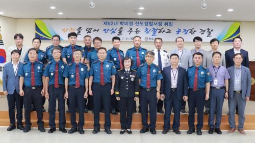 [½Åµ¿¾Æ¹æ¼Û=Á¶º´³²±âÀÚ] Áøµµ°æÂû¼­ Á¦82´ë ¹Ú¹Ì¿µ ¼­ÀåÀÌ Áö³­ 7¿ù 31ÀÏ ÃëÀÓ½ÄÀ» °®°í º»°ÝÀûÀÎ ¾÷¹«¿¡ µ¹ÀÔÇß´Ù.  ¹Ú¹Ì¿µ °æÂû¼­ÀåÀº Àü³² Ãâ½ÅÀ¸·Î ¸ñÆ÷Á¦ÀÏ¿©ÀÚ°íµîÇб³, µ¿±¹´ëÇб³ °æÂûÇàÁ¤Çаú¸¦ Á¹¾÷Çϰí, 1989³â¿¡ °æÂû¿¡ ÀÔ¹®ÇÏ¿© ¼­¿ïû ¿©¼ºº¸È£¡¦