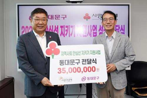 [½Åµ¿¾Æ¹æ¼Û µ¿´ë¹®=À̽ŵ¿±âÀÚ]µ¿´ë¹®±¸´Â Áö³­ 7ÀÏ µ¿´ë¹®±¸Ã»À» ¹æ¹®ÇÑ ¼­¿ï»çȸº¹Áö°øµ¿¸ð±Ýȸ(ÁöȸÀå ±èÀç·Ï)¿¡¼­ ¡®¾È½É¼± Áö۱â Áö¿ø »ç¾÷¡¯ ÃßÁøÀ» À§ÇÑ »ç¾÷ºñ 3,500¸¸¿øÀ» Áö¿øÇß´Ù°í ¹àÇû´Ù. À̳¯ Àü´Þ½Ä¿¡´Â µ¿´ë¹®±¸ ÃÖÈ«¿¬ ºÎ±¸Ã»Àå°ú °øµ¿¸ð±Ýȸ ¼­¡¦