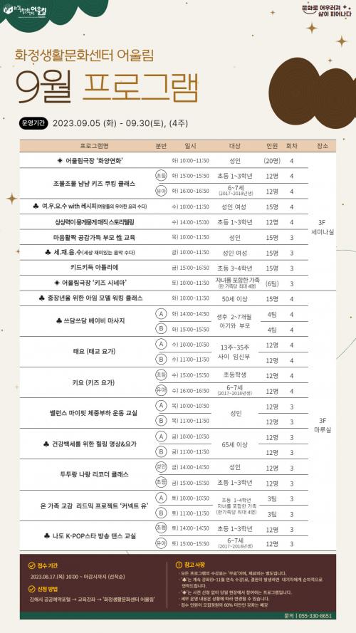 È­Á¤»ýȰ¹®È­¼¾ÅÍ ¾î¿ï¸² 9¿ùºÎÅÍ Á¤±Ô ÇÁ·Î±×·¥ ¿î¿µ