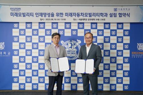 [½Åµ¿¾Æ¹æ¼Û=À̽ŵ¿±âÀÚ]¼­¿ï´ëÇб³(ÃÑÀå À¯È«¸²)´Â Çö´ëÀÚµ¿Â÷¿Í ÇÔ²² ¹Ì·¡ ¸ðºô¸®Æ¼ »ê¾÷À» ¼±µµÇÒ ÇÙ½É ÀÎÀç ¾ç¼ºÀ» À§ÇØ Ã¤¿ëÁ¶°ÇÇü ¼®»ç °úÁ¤ °è¾àÇаú¸¦ ¼³¸³ÇÑ´Ù°í 16ÀÏ(¼ö) ¹àÇû´Ù. ¼ÒÇÁÆ®¿þ¾î Áß½ÉÀÇ ÀÚµ¿Â÷(Software Defined Vehicle, ÀÌÇÏ SDV) °³¹ß °¡¼Ó¡¦