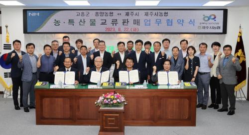 [½Åµ¿¾Æ¹æ¼Û=¹Ú±¤¿Á±âÀÚ] °íÈﱺ(±º¼ö °ø¿µ¹Î)Àº 22ÀÏ °íÈﱺ°ú Á¦ÁÖ½Ã, Èï¾ç³óÇù ¹× Á¦ÁֽóóÇù 4ÀÚ °£ °íÈï½ÒÀ» ºñ·ÔÇÑ ¡®Áö¿ª ³ó¼öƯ»ê¹° À¯Åë Ȱ¼ºÈ­¸¦ À§ÇÑ ¾÷¹«Çù¾à¡¯À» ü°áÇß´Ù°í ¹àÇû´Ù. À̳¯ Çù¾à½Ä¿¡´Â °ø¿µ¹Î °íÈﱺ¼ö, °­º´»ï Á¦ÁÖ½ÃÀå, Çù¾à»çÀÎ °íºÀ¡¦