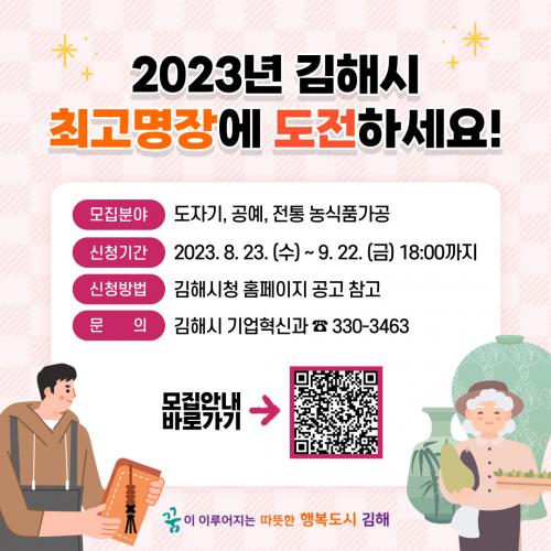 [½Åµ¿¾Æ¹æ¼Û´º½º=¾çÇýÁö±âÀÚ]±èÇØ½Ã(½ÃÀå ȫſë)°¡ ³»´Þ 22ÀϱîÁö ¡®2023³â ±èÇØ½Ã ÃÖ°í¸íÀ塯 Èĺ¸ÀÚ¸¦ ¸ðÁýÇÑ´Ù°í 21ÀÏ ¹àÇû´Ù. ¿ÃÇØ·Î 4ȸ°¸¦ ¸Â´Â ±èÇØ½Ã ÃÖ°í¸íÀå ¼±¹ß ºÐ¾ß´Â µµÀÚ±â, °ø¿¹, ÀüÅë ³ó½Äǰ°¡°ø 3°³ ºÐ¾ßÀ̸ç ÀÌ Áß¿¡¼­ 2¸íÀ» ¼±Á¤ÇÑ´Ù. ½Åû¡¦