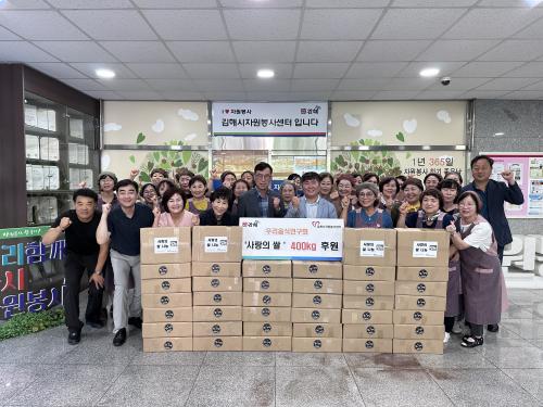 [½Åµ¿¾Æ¹æ¼Û´º½º=ÃÖ¼ÛÈ­±âÀÚ] ±èÇØ½Ã´Â ±èÇØ½Ã¿ì¸®À½½Ä¿¬±¸È¸(ȸÀå ±è¼®¼ø)¿¡¼­ Ãë¾à°èÃþÀ» À§ÇØ ½Ò 400kgÀ» ±âºÎÇß´Ù°í 6ÀÏ ¹àÇû´Ù. ±âŹ ¼ºÇ°Àº ±èÇØ½ÃÀÚ¿øºÀ»ç´ÜüÇùÀÇȸ ¡®»ç¶ûÀÇ ½Ò ³ª´® ÀºÇ࡯¿¡ º¸³»Á® °ü³» º¹Áö »ç°¢Áö´ë¿¡ ÀÖ´Â ¾î·Á¿î ÀÌ¿ô¿¡°Ô Àü´ÞµÈ´Ù¡¦