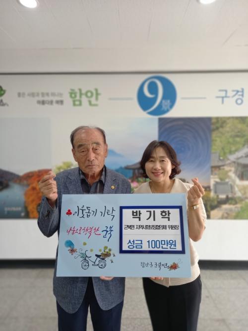 [½Åµ¿¾Æ¹æ¼Û ÇÔ¾È=À̽ŵ¿±âÀÚ]ÇԾȱº ±ººÏ¸é Áö¿ª»çȸº¸ÀåÇùÀÇü ¹Ú±âÇÐ ¹Î°£À§¿øÀåÀº Ãß¼®À» ¸ÂÀÌÇØ 12ÀÏ ÀÌ¿ôµ½±â ¼º±Ý 100¸¸ ¿øÀ» ±ººÏ¸é¿¡ ±âŹÇÏ¸ç µû¶æÇÑ ¿ÂÁ¤À» ³ª´³´Ù. ¹Ú±âÇÐ À§¿øÀåÀº ¡°³Ë³ËÇÏÁø ¾ÊÁö¸¸ ¾î·Á¿î ÀÌ¿ôµé¿¡°Ô Á¶±ÝÀ̳ª¸¶ º¸ÅÆÀÌ µÇ¾úÀ¸¸é ÇÏ¡¦