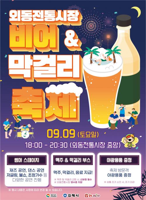 [½Åµ¿¾Æ¹æ¼Û´º½º=ÃÖ¼ÛÈ­±âÀÚ] ±èÇØ½Ã(½ÃÀå ȫſë)´Â 9ÀÏ ¿ÀÈÄ 6~9½Ã Áö¿ª ¸í¼ÒÀÎ ¿Üµ¿½ÃÀå¿¡¼­ ºñ¾î&¸·°É¸® ÃàÁ¦°¡ ¿­¸°´Ù°í 8ÀÏ ¹àÇû´Ù. À̹ø ÃàÁ¦´Â Áö³­ Äڷγª19 È®»ê ÀÌÈÄ Ä§Ã¼µÈ ÀüÅë½ÃÀå »óÀεéÀ» ÀÀ¿øÇϰí À̿밴µé¿¡°Ô Áñ°Å¿òÀ» ¼±»çÇϱâ À§ÇØ ½ÃÀå »óÀΡ¦