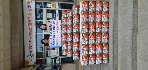 [½Åµ¿¾Æ¹æ¼Û´º½º=ÃÖ¼ÛÈ­±âÀÚ] ±èÇØ½Ã È­¼º P&F ÀÌÀºÈ­ ´ëÇ¥°¡ Ãß¼®À» ¾ÕµÎ°í Áö³­ 9¿ù 12ÀÏ È°Ãµµ¿ÇàÁ¤º¹Áö¼¾Å͸¦ ¹æ¹®ÇÏ¿© ±èÄ¡5kg 100¹Ú½º(350¸¸¿ø»ó´ç)¸¦ °ü³» ¾î·Á¿î °èÃþÀ» À§ÇØ ±âŹÇÏ¿´´Ù È­¼º P&F´Â ±èÇØ½Ã ÆäÀÎÆ® ¹× ¹ÌÀå, ¹æ¼öµµÀå µîÀÇ °ø»ç¾÷ü¡¦