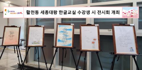 [½Åµ¿¾Æ¹æ¼Û´º½º=ÃÖ¼ÛÈ­±âÀÚ] Ȱõµ¿ ÁÖ¹ÎÀÚġȸ´Â Ȱõµ¿ ÇàÁ¤º¹Áö¼¾ÅÍ¿¡¼­ 9¿ù 11ÀϺÎÅÍ ÀÏÁÖÀϰ£ ¼¼Á¾´ë¿Õ Çѱ۱³½Ç ¼ö°­»ýµéÀÌ ¾´ ¡°½Ã Àü½Ãȸ¡±¸¦ °³ÃÖÇϰí ÀÖ´Ù°í ¹àÇû´Ù. ¡°¼¼Á¾´ë¿Õ Çѱ۱³½Ç¡±Àº Ȱõµ¿ ÁÖ¹ÎÀÚġȸ À̼øÁø ȸÀåÀÌ ÇàÁ¤º¹Áö¼¾ÅÍ¿¡ ¹æ¹®ÇÑ ¾î¡¦