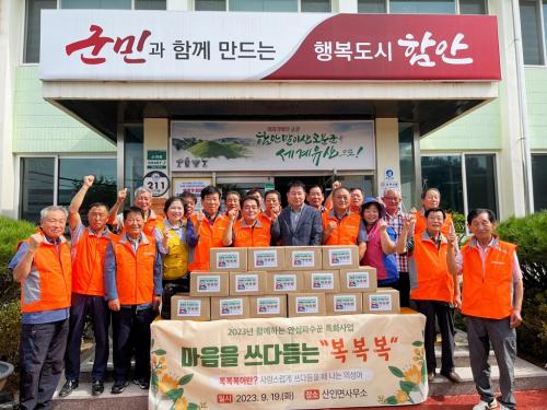 [½Åµ¿¾Æ¹æ¼Û ÇÔ¾È=À̽ŵ¿±âÀÚ]ÇԾȱº »êÀθéÀº Áö³­ 19ÀÏ Áö¿ª»çȸº¸ÀåÇùÀÇü(°øµ¿À§¿øÀå õÀº¿í, Á¶È«·¡)¿Í ÇÔ²² Ãß¼® ¸íÀýÀ» ¸Â¾Æ ¸¶À½À» ¾²´ÙµëÀº ¡®º¹º¹º¹ »ç¾÷¡¯ÀÇ ÀÏȯÀ¸·Î Àú¼Òµæ Ãë¾à°èÃþ 63°¡±¸¿¡ À½½Ä²Ù·¯¹Ì¸¦ Àü´ÞÇß´Ù. ¡®º¹º¹º¹ »ç¾÷¡¯Àº ´ë»óÀ» »ç¶û½º¡¦