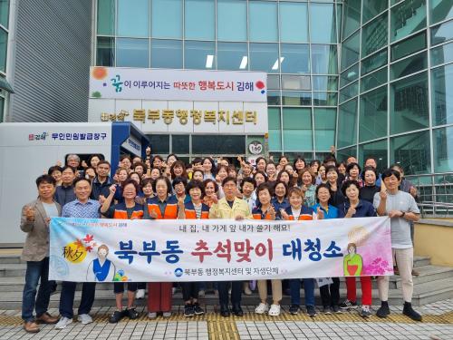 [½Åµ¿¾Æ¹æ¼Û´º½º=ÃÖ¼ÛÈ­±âÀÚ] ±èÇØ½Ã ºÏºÎµ¿ÇàÁ¤º¹Áö¼¾ÅÍ´Â Áö³­ 26ÀÏ Ãß¼®À» ¾ÕµÎ°í ±ú²ýÇÑ µµ½Ã ¹Ì°ü Á¶¼ºÀ» À§ÇÏ¿© ¡®Ãß¼®¸ÂÀÌ ´ëû¼Ò¡¯¸¦ ½Ç½ÃÇß´Ù. À̹ø ´ëû¼Ò´Â ÅëÀåÇùÀÇȸ, ÁÖ¹ÎÀÚġȸ, ÀÚ¿¬º¸È£ÇùÀÇȸ¸¦ ºñ·ÔÇÑ 6°³ ÀÚ»ý´Üü¿Í °ø¹«¿ø ¹× ÁֹΠµî 15¡¦