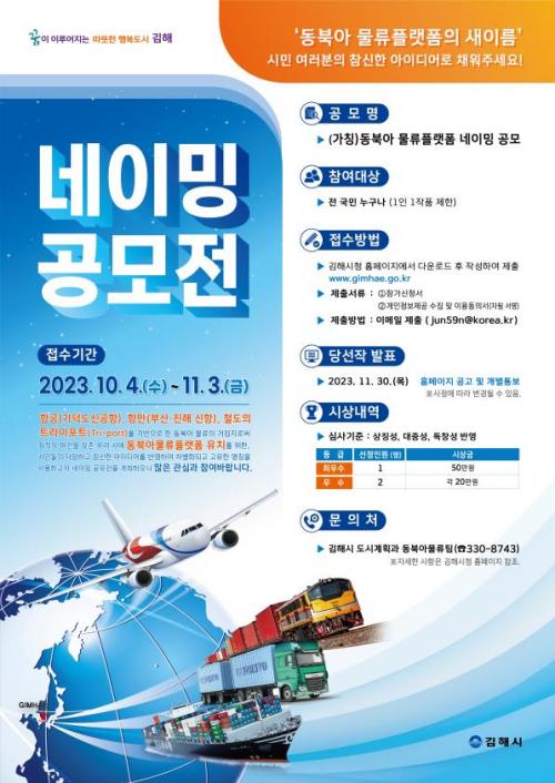[½Åµ¿¾Æ¹æ¼Û´º½º=ÃÖ¼ÛÈ­±âÀÚ] ±èÇØ½Ã´Â ´ÙÀ½ ´Þ 3ÀϱîÁö µ¿ºÏ¾Æ ¹°·ùÇ÷§Æû Á¤Ã¥ ³×ÀÌ¹Ö °ø¸ðÀüÀ» ½Ç½ÃÇÑ´Ù°í ¹àÇû´Ù. °ø¸ðÀüÀº ±âÁ¸¿¡ ½á¿À´ø ¸íĪÀÎ µ¿ºÏ¾Æ ¹°·ùÇ÷§Æû¿¡ ´ëÇÏ¿© ±èÇØ½ÃÀÇ Æ¯¼ºÀ» ¹Ý¿µÇÑ »ó¡¼ºÀ» ³ªÅ¸³¾ ¼ö ÀÖ´Â ´Ù¾çÇϰí Âü½ÅÇÑ ¾ÆÀ̵ð¾î¸¦ ±¹¡¦