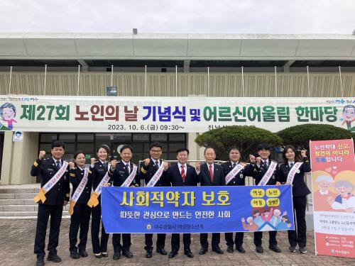 [½Åµ¿¾Æ¹æ¼Û=¹Ú±¤¿Á±âÀÚ] ¿©¼ö°æÂû¼­(ÃÖÈ«¹ü ¼­Àå)´Â 6ÀÏ ¡®Á¦27ȸ ³ëÀÎÀÇ ³¯¡¯À» ¸Â¾Æ ¿©¼öÁø³²½Ç³»Ã¼À°°ü¿¡¼­ ³ëÀÎÇÐ´ë ¿¹¹æ¡¤±ÙÀý Ä·ÆäÀÎÀ» ½Ç½ÃÇß´Ù°í ¹àÇû´Ù. À̹ø Ä·ÆäÀÎÀº ¡®Á¦27ȸ ³ëÀÎÀÇ ³¯¡¯ Çà»çÀåÀ» ãÀº ¾î¸£½Å 1,000¸í ´ë»óÀ¸·Î ³ëÀÎÇд븦 ºñ·ÔÇÑ¡¦