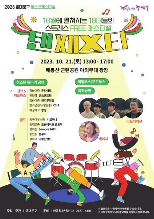 µ¿´ë¹®±¸(±¸Ã»Àå ÀÌÇÊÇü)°¡ ¿À´Â 21ÀÏ(Åä) ¹èºÀ»ê ±Ù¸°°ø¿ø ¾ß¿Ü¹«´ë¿¡¼­ û¼Ò³â ÃàÁ¦ ¡®ÅÙ Æä½ºÅ¸(TEN FESTA)¡¯¸¦ °³ÃÖÇÑ´Ù°í ¹àÇû´Ù. ¡®ÅÙ Æä½ºÅ¸¡¯´Â ¡®10¿ù¿¡ ÆîÃÄÁö´Â 10´ëµéÀÇ ½ºÆ®·¹½º FREE Æä½ºÆ¼¹ú¡¯À̶ó´Â Àǹ̸¦ ´ã°í ÀÖÀ¸¸ç À̳¯ ¿ÀÈÄ 1½ÃºÎÅÍ 5½Ã±îÁö ¡¦