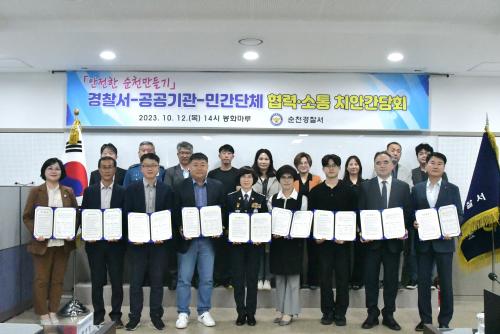[½Åµ¿¾Æ¹æ¼Û¤©=¹Ú±¤¿Á±âÀÚ] Àü³² ¼øÃµ°æÂû¼(¼Àå ±è³²Èñ)´Â ½Ã¹ÎÀÇ Ã¼°¨¾ÈÀüµµ Çâ»óÀ» À§ÇØ ¹Î¡¤°ü¡¤°æ Çù·Â Ä¡¾È°£´ãȸ¸¦ °³ÃÖÇÏ°í ¾÷¹«Çù¾àÀ» ü°áÇÏ¿´´Ù. À̹ø °£´ãȸ´Â °æÂû¼, ¿ìü±¹, µµ½Ã°¡½º, Çѱ¹Àü·Â, ÁÖ¹ÎÀÚġȸ, ³ëÀκ¹Áö¿¬ÇÕȸ, Çѱ¹¾ßÄí¸£Æ® µî¡¦