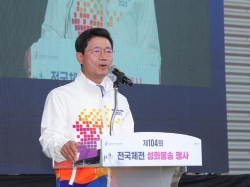 [½Åµ¿¾Æ¹æ¼Û=¹Ú±¤¿Á±âÀÚ] ±¤¾ç½Ã´Â Áö³­ 11Àϰú 12ÀÏ ½Ãû ¾Õ ¾ß¿Ü°ø¿¬Àå¿¡¼­ ¡®Á¦104ȸ Àü±¹Ã¼À°´ëȸ¡¯¿Í ¡®Á¦43ȸ Àü±¹Àå¾ÖÀÎüÀ°´ëȸ¡¯ÀÇ ¼º°øÀ» ±â¿øÇÏ´Â ¼ºÈ­ºÀ¼Û ¾ÈÄ¡½Ä°ú Ãâ¹ß½ÄÀ» ÁøÇàÇß´Ù. ¼ºÈ­ ¾ÈÄ¡½ÄÀº Áö³­ 11ÀÏ 400¿© ¸íÀÌ Âü¼®ÇÑ °¡¿îµ¥ ½Ã¸³±¹¾Ç´Ü°ú¡¦