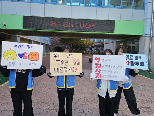 [½Åµ¿¾Æ¹æ¼Û ¿©¼ö=À̽ŵ¿±âÀÚ]10¿ù 17ÀÏ ±¤¿µ°íµîÇб³(±³Àå ¹Î¿¬¿Á)Àº ±¤¾ç½Ã û¼Ò³â ¹®È­¼¾ÅÍ¿Í ÇÔ²² ¡®¹Ù¸¥ ¸» »ç¿ë Ä·ÆäÀΡ¯À» ÁøÇàÇÏ¿´´Ù. ±¤¿µ°íµîÇб³ Çб³»ýȰ¾ÈÀüºÎ(ºÎÀå ¼ÕÇöÀç)´Â ±¤¾ç½Ã û¼Ò³â ¹®È­¼¾ÅÍ¿Í ÇÔ²² ¾ÆÄ§ µî±³ ¸ÂÀÌ¿Í ´õºÒ¾î ¡®¹Ù¸¥ ¸» »ç¿ë¡¦