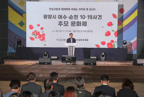 [½Åµ¿¾Æ¹æ¼Û=¹Ú±¤¿Á±âÀÚ] ±¤¾ç½Ã´Â ¿©¼ö¡¤¼øÃµ 10¡¤19»ç°Ç Èñ»ýÀÚ¿Í À¯Á·µéÀÇ ¸¶À½À» Ä¡À¯Çϱâ À§ÇØ ¿©¼ö¡¤¼øÃµ 10¡¤19»ç°Ç Á¦75Áֱ⸦ ¸Â¾Æ 18ÀÏ ½Ãû ¾Õ ¾ß¿Ü°ø¿¬Àå¿¡¼­ Ã߸ð¹®È­Á¦¸¦ °³ÃÖÇß´Ù. ¿©¼ø»ç°Ç ±¤¾çÀ¯Á·È¸°¡ ÁÖ°üÇÑ À̹ø Ã߸ð¹®È­Á¦´Â À¯Á·µéÀÌ ÈûÀ» ¸ð¡¦