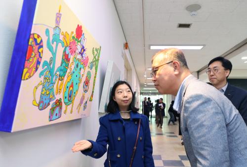 °­³²±¸(±¸Ã»Àå Á¶¼º¸í)°¡ Àå¾ÖÀÎ ¿¹¼ú°¡ÀÇ ÀÛǰÀ» ºí·çÅõ½º ½ºÇÇÄ¿ ±â´ÉÀÌ ÀÖ´Â ¾×ÀÚ·Î ¸¸µé¾î Àü½Ã¡¤ÆÇ¸ÅÇÏ´Â ¡®ÆäÀÎÅͽº µå¸²¡¯ Àü½Ãȸ °³¸· Çà»ç¸¦ 18ÀÏ ±¸Ã»¿¡¼­ °³ÃÖÇß´Ù. ÆäÀÎÅͽº µå¸²(Painter¢¥s Dream)Àº °­³²±¸¿Í (ÁÖ)Æ÷½ºÄÚÀÎÅͳ»¼Å³Î, Æ÷½ºÄÚ½ºÆ¿¸®¿Â(ÁÖ¡¦