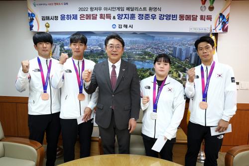 [½Åµ¿¾Æ¹æ¼Û´º½º=ÃÖ¼ÛÈ­±âÀÚ] ±èÇØ½Ã´Â Á¦19ȸ Ç×Àú¿ì ¾Æ½Ã¾È°ÔÀÓ¿¡¼­ ¿ì¼öÇÑ ¼ºÀûÀ» °ÅµÐ ±èÇØ½Ãû ¼Ò¼Ó ¸Þ´Þ¸®½ºÆ®µéÀ» ÃÊÃ»ÇØ ÃàÇÏÇÏ°í Æ÷»ó±ÝÀ» Àü´ÞÇß´Ù°í 11ÀÏ ¹àÇû´Ù. ÀÌ ÀÚ¸®¿¡´Â ¾Æ½Ã¾È°ÔÀÓ ¿ªµµ Àº¸Þ´Þ¸®½ºÆ® À±ÇÏÁ¦, ÇÏŰ µ¿¸Þ´Þ¸®½ºÆ® ¾çÁöÈÆ, Á¤ÁØ¿ì, ¡¦