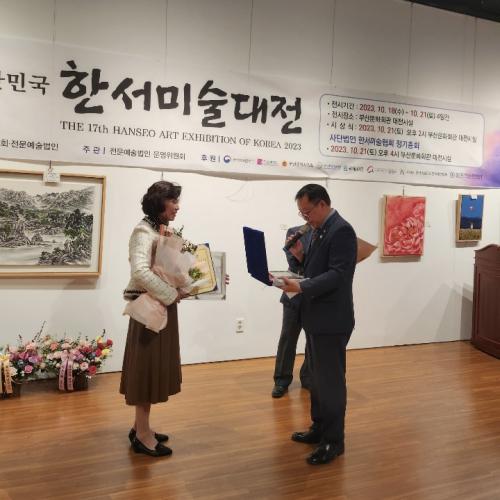[½Åµ¿¾Æ¹æ¼Û´º½º=ÃÖ¼ÛÈ­±âÀÚ] Àü¹®¿¹¼ú¹ýÀÎ (»ç)ÇѼ­¹Ì¼úÇùȸ°¡ ÁÖÃÖÇÏ°í ¹®È­Ã¼À°°ü±¤ºÎ°¡ ÈÄ¿øÇÏ´Â ¡¸2023³â Á¦17ȸ ´ëÇѹα¹ ÇѼ­¹Ì¼ú´ëÀü¡¹¿¡¼­ »ï¾Èµ¿ ¹è°æÈñ ´ÔÀÇ ¡®¼Ûdz¼ÛÇâ(»ê¼öÇϰæ)¡¯ÀÌ Çѱ¹È­ ºÎ¹®¿¡¼­ ´ë»óÀÇ ¿µ¿¹¸¦ ¾È¾Ò´Ù. »ï¾Èµ¿ ÁÖ¹ÎÀÚÄ¡¼¾ÅÍ¿¡¼­ ¡¦