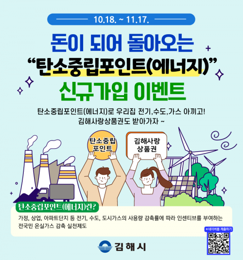[½Åµ¿¾Æ¹æ¼Û´º½º=ÃÖ¼ÛÈ­±âÀÚ] ±èÇØ½Ã´Â ´ÙÀ½ ´Þ 17ÀϱîÁö ±èÇØ½Ã¹ÎÀ» ´ë»óÀ¸·Î ¡®µ·ÀÌ µÇ¾î µ¹¾Æ¿À´Â ź¼ÒÁ߸³Æ÷ÀÎÆ®(¿¡³ÊÁö) ½Å±Ô °¡ÀÔ À̺¥Æ®¡¯¸¦ ÁøÇàÇÑ´Ù°í 19ÀÏ ¹àÇû´Ù. À̺¥Æ® ±â°£ µ¿¾È ź¼ÒÁ߸³Æ÷ÀÎÆ®(¿¡³ÊÁö)¿¡ °¡ÀÔÇϰí À̺¥Æ® Âü¿© ½Åû ³×À̹öÆû¿¡ °¡ÀÔ ³»¡¦