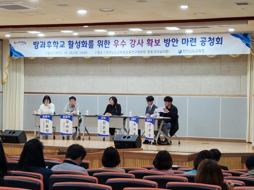 [½Åµ¿¾Æ¹æ¼Û ¿©¼ö=À̽ŵ¿±âÀÚ]Àü¶ó³²µµ±³À°Ã»(±³À°°¨ ±è´ëÁß)ÀÌ 10¿ù 25ÀÏ Àü³²±³À°Ã»±³À°¿¬±¸Á¤º¸¿ø ÇÕµ¿°­Àǽǿ¡¼­ °øÃ»È¸¸¦ ¿­°í, ¿ì¼ö °­»ç È®º¸ µî ¹æ°úÈÄÇб³ Ȱ¼ºÈ­ ¹æ¾ÈÀ» ³íÀÇÇß´Ù. ¹æ°úÈÄÇб³´Â ±³À°°úÁ¤ ÀÌ¿ÜÀÇ ´Ù¾çÇϰí âÀÇÀûÀÎ ±³À° °æÇèÀ» Á¦°øÇØ »ç±³¡¦