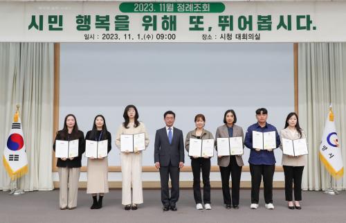 [½Åµ¿¾Æ¹æ¼Û=¹Ú±¤¿Á±âÀÚ] ±¤¾ç½Ã´Â 1ÀÏ ½Ãû ´ëȸÀǽǿ¡¼­ °øÁ÷ÀÚ 150¿© ¸íÀÌ Âü¼®ÇÑ °¡¿îµ¥ 2023³â 11¿ù Á¤·Ê Á¶È¸¸¦ °³ÃÖÇß´Ù. À̳¯ Á¤·ÊÁ¶È¸¿¡¼­´Â ½ÃÁ¤¹ßÀü À¯°ø Á÷¿ø 7¸í¿¡°Ô ǥâÀåÀ» ¼ö¿©ÇÏ¸ç ¸ÃÀº¹Ù ¾÷¹«¸¦ ¼º½ÇÈ÷ ÃßÁøÇØ ÁØ Á÷¿øµéÀÇ ³ë°í¿¡ °¨»çÇÑ ¸¶À½À»¡¦