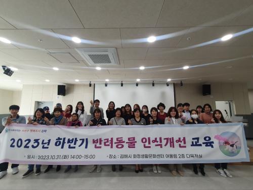 [½Åµ¿¾Æ¹æ¼Û´º½º=ÃÖ¼ÛÈ­±âÀÚ] ±èÇØ½Ã´Â ¼º¼÷ÇÑ ¹Ý·Áµ¿¹° ¹®È­ Á¤ÂøÀ» À§ÇÑ ÇϹݱ⠱³À°À» ½Ç½ÃÇß´Ù°í 1ÀÏ ¹àÇû´Ù. ±³À°Àº ½Ã¹Î 50¿©¸íÀ» ´ë»óÀ¸·Î È­Á¤»ýȰ¹®È­¼¾ÅÍ ¾î¿ï¸² ´Ù¸ñÀû½Ç¿¡¼­ 1½Ã°£°¡·® ÁøÇàµÆÀ¸¸ç ±³À°À» ¸ÃÀº ÀÎÁ¦´ëÇб³ ¹Ý·Áµ¿¹°º¸°ÇÇаú õÁ¤È¯ ±³¼ö¡¦