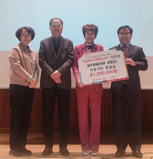 [½Åµ¿¾Æ¹æ¼Û´º½º=ÃÖ¼ÛÈ­±âÀÚ] (Àç)±èÇØ½Ãº¹ÁöÀç´Ü(´ëÇ¥ÀÌ»ç ÃÖÁ¤±Ô) ±èÇØ½ÃÀå¾ÖÀÎÁ¾ÇÕº¹Áö°ü(°üÀå ¿©¹ÌÁø)Àº 11¿ù 7ÀÏ(È­) Á¤¿ìÁ¤¹Ð(´ëÇ¥ ±èÇü±Ù)¿¡¼­ ÁöÁ¤±âŹ ±Ý1,000,000¿ø Àü´Þ½ÄÀ» ÁøÇàÇß´Ù°í ¹àÇû´Ù. Á¤¿ìÁ¤¹Ð(´ëÇ¥ ±èÇü±Ù)Àº ºÎ»ê½Ã ³ì»ê ¼ÒÀç·Î ±ÝÇü ¹× ±Ý¡¦