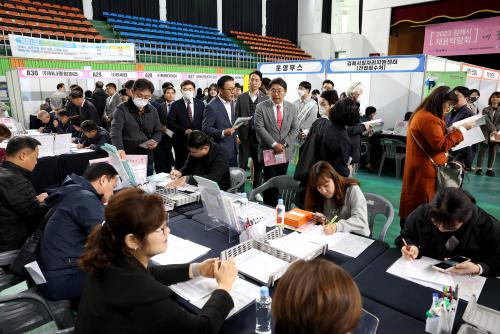 [½Åµ¿¾Æ¹æ¼Û´º½º=ÃÖ¼ÛÈ­±âÀÚ] ±èÇØ½Ã(½ÃÀå ȫſë)Àº Áö³­ 8ÀÏ ±èÇØ¹®È­Ã¼À°°ü¿¡¼­ ±¸Àαâ¾÷°ú ±¸Á÷Èñ¸ÁÀÚµéÀÌ Âü¿©ÇÑ °¡¿îµ¥ °³ÃÖÇÑ ¡º2023 ±èÇØ½Ã ä¿ë¹Ú¶÷ȸ_³» ²ÞÀ» Àâ(job)¾Æ¶ó¡»°¡ ¼ºÈ²¸®¿¡ ³¡³µ´Ù°í ¹àÇû´Ù. ¿ÃÇØ´Â ±èÇØ½Ã, ±èÇØ°í¿ëº¹Áö+¼¾ÅÍ, ±èÇØ°í¿ë¾ÈÁ¤¡¦