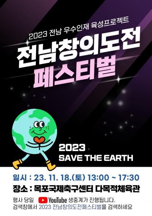 [½Åµ¿¾Æ¹æ¼Û ¿©¼ö=À̽ŵ¿±âÀÚ]Àü¶ó³²µµ±³À°Ã»ÀÌ 11¿ù 18ÀÏ ¸ñÆ÷±¹Á¦Ã౸¼¾ÅÍ¿¡¼­ ¡®2023 Àü³² âÀǵµÀü Æä½ºÆ¼¹ú¡¯À» ¿¬´Ù. ¸ñÆ÷MBC(´ëÇ¥ÀÌ»ç À̼ø¿ë)¿Í Çù·ÂÇϰí Àü³²¹ß¸í±³À°¿¬±¸È¸(ȸÀå ÀüÈñ)°¡ ÁÖ°üÇÑ À̹ø Çà»ç´Â Àü³²ÀÇ Ã¢ÀÇÀ¶ÇÕÇü ÀÎÀç ¾ç¼ºÀ» À§ÇØ ÇлýµéÀÇ¡¦