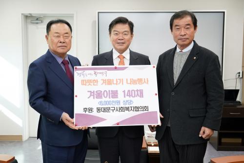 [½Åµ¿¾Æ¹æ¼Û µ¿´ë¹®=À̽ŵ¿±âÀÚ]µ¿´ë¹®±¸(±¸Ã»Àå ÀÌÇÊÇü)¿Í µ¿´ë¹®±¸»çȸº¹ÁöÇùÀÇȸ(ȸÀå ¹Ú»óÁ¾)´Â Áö³­ 24ÀÏ ±¸Ã» ±¤Àå¿¡¼­ °Ü¿ïö ³­¹æºñ°¡ ºÎ´ãµÇ´Â Àú¼Òµæ Ãë¾à°èÃþÀ» À§ÇÑ ¡®°Ü¿ïÀÌºÒ Àü´Þ½Ä¡¯À» ¿­¾ú´Ù. µ¿´ë¹®±¸»çȸº¹ÁöÇùÀÇȸ´Â µ¶°Å³ëÀÎ, Àú¼ÒµæÃþ µî ³­¹æ¡¦