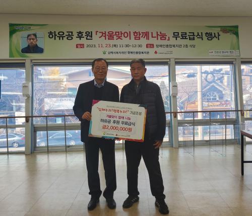 [½Åµ¿¾Æ¹æ¼Û´º½º=±èÁÖ¿¬±âÀÚ] (Àç)±èÇØ½Ãº¹ÁöÀç´Ü(´ëÇ¥ÀÌ»ç ÃÖÁ¤±Ô) ±èÇØ½ÃÀå¾ÖÀÎÁ¾ÇÕº¹Áö°ü(°üÀå ¿©¹ÌÁø)Àº 11¿ù 23ÀÏ(¸ñ) ±Ý200¸¸¿øÀ» °Ü¿ï¸ÂÀÌ ÇÔ²² ³ª´® ¹«·á±Þ½Ä Çà»ç¸¦ ½Ç½ÃÇß´Ù°í ¹àÇû´Ù. À̹ø Çà»ç´Â ¡®ÇÏÀ¯°ø¡¯ °³ÀÎ ÈÄ¿øÀÚ°¡ 6¿ù¿¡ 1ȸ ¹«·á±Þ½Ä À̾î 2ȸ°¡¦