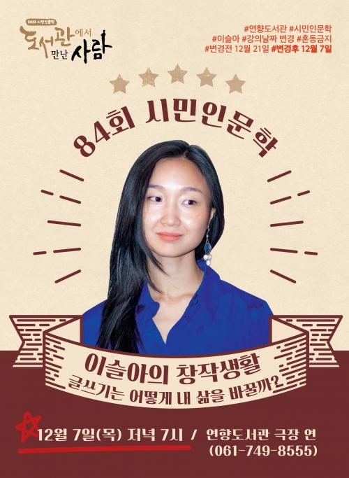 [½Åµ¿¾Æ¹æ¼Û ¼øÃµ=±è¿ëÈÆ ±âÀÚ] ¼øÃµ½Ã(½ÃÀå ³ë°ü±Ô)´Â ½Ã¹ÎÀι®ÇС®µµ¼­°ü¿¡¼­ ¸¸³­ »ç¶÷¡¯ÀÇ 2023³â ¸¶Áö¸· °­¿¬À» ¿À´Â 12¿ù 7ÀÏ ¼øÃµ½Ã¸³¿¬Çâµµ¼­°ü ±ØÀå¿¡¼­ °³ÃÖÇÑ´Ù. °­¿¬ÀÚ´Â ÀåÆí¼Ò¼³ ¡®°¡³àÀåÀÇ ½Ã´ë¡¯¸¦ ÁýÇÊÇÑ À̽½¾Æ ÀÛ°¡·Î, ¿ÃÇØÀÇ ½Ã¹ÎÀι®ÇÐ °­¿¬À»¡¦