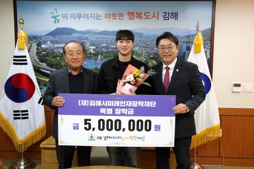 [½Åµ¿¾Æ¹æ¼Û´º½º=±èÁÖ¿¬±âÀÚ] ±èÇØ½Ã¹Ì·¡ÀÎÀçÀåÇÐÀç´Ü(ÀÌ»çÀå ÇöÁ¾¿ø)Àº 1ÀÏ ÀÎÁ¦´ëÇб³ ÇÏŰºÎ À̹Î(19¡¤1Çгâ) ¼±¼ö¿¡°Ô Ưº° ÀåÇÐ±Ý 500¸¸¿øÀ» Àü´ÞÇß´Ù. ÀÌ ¼±¼ö´Â ±èÇØ¼­Áß, ±èÇØ°í¸¦ Á¹¾÷ÇÑ À¯¸ÁÇÑ ÇÏŰ ¼±¼ö·Î Áß¡¤°í±³ ½ÃÀý Àü±¹ÇÏŰ´ëȸ ´Ù¼ö »óÀ§ ÀÔ»ó°ú ¡¦