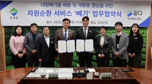 [½Åµ¿¾Æ¹æ¼Ûº¸¼º=¹Ú±¤¿Á±âÀÚ] º¸¼º±ºÀº 7ÀÏ ±ºÃ» 2Ãþ ¼ÒȸÀǽǿ¡¼­ ´ëÇüÆó±â¹° °£Æí °áÁ¦ ¼­ºñ½º ¡®»©±â¡¯ ¿î¿µ ¾÷üÀÎ ¢ß°°´Ù(´ëÇ¥ÀÌ»ç °íÀ缺)¿Í ¾÷¹« Çù¾àÀ» ü°áÇß´Ù°í ¹àÇû´Ù. À̳¯ ¾÷¹« Çù¾àÀº ´ëÇüÆó±â¹° ¹èÃâ ¹× Áß°í ÀçȰ¿ë ¼øÈ¯ ¼­ºñ½º¸¦ Ȱ¼ºÈ­Çϱâ À§¡¦
