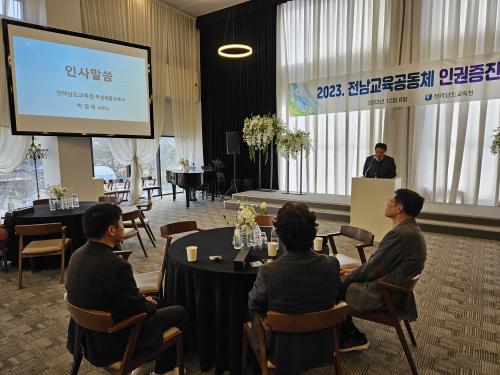 [½Åµ¿¾Æ¹æ¼Û Àü³²¿©¼ö=À̽ŵ¿±âÀÚ]Àü¶ó³²µµ±³À°Ã»ÀÌ 12¿ù 8ÀÏ ±¤ÁÖ ³²±¸ ¾î¹Ýºê·è¿¡¼­ ¡®2023³â ±³À°°øµ¿Ã¼ ÀαÇÁõÁø ¿¬Âùȸ¡¯¸¦ °³ÃÖÇß´Ù. Àαǿ¡ °ü½ÉÀ» °¡Áö°í ±³À°È°µ¿¿¡ ÀÓÇϰí ÀÖ´Â Àü¹®°¡¿Í ÇöÀå ±³»çµéÀÌ ¸ð¿© Àαǿ¡ ´ëÇÑ ÀÌÇØ¸¦ °øÀ¯ÇÏ°í °æÇèÀ» ³ª´©´Â ¼ÒÁßÇÑ¡¦