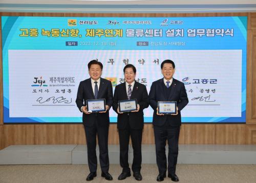 [½Åµ¿¾Æ¹æ¼Û°íÈï=¹Ú±¤¿Á±âÀÚ] °íÈﱺ(±º¼ö °ø¿µ¹Î)Àº 18ÀÏ Àü³²µµÃ» ¼­ÀçÇʽǿ¡¼­ Àü¶ó³²µµ, Á¦ÁÖÆ¯º°ÀÚÄ¡µµ¿Í 3ÀÚ °£ ³ìµ¿½ÅÇ׿¡ Á¦ÁÖ »ý»êǰÀÇ ³»·ú ¿¬°è ¹°·ù°ÅÁ¡ Á¶¼ºÀ» À§ÇÑ ¾÷¹«Çù¾àÀ» ü°áÇß´Ù. À̳¯ Çù¾à½Ä¿¡´Â °ø¿µ¹Î °íÈﱺ¼ö¿Í ±è¿µ·Ï Àü¶ó³²µµÁö»ç, ¿À¿µ¡¦