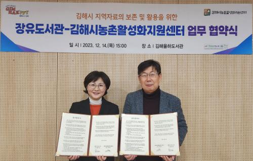 [½Åµ¿¾Æ¹æ¼Û´º½º=±èÁÖ¿¬±âÀÚ] ±èÇØ½Ã ÀåÀ¯µµ¼­°üÀº Áö³­ 14ÀÏ ±èÇØÀ²Çϵµ¼­°ü ¼¼¹Ì³ª½Ç¿¡¼­ ±èÇØ½Ã³óÃÌȰ¼ºÈ­Áö¿ø¼¾ÅÍ¿Í ±èÇØ½Ã Áö¿ªÀÚ·áÀÇ º¸Á¸•Ȱ¿ë ¹× ³óÃÌ µ¶¼­¹®È­ È®»êÀ» À§ÇÑ ¾÷¹«Çù¾àÀ» ü°áÇß´Ù. ±èÇØ½Ã °ÅÁ¡µµ¼­°üÀÎ ÀåÀ¯µµ¼­°üÀº ¡®Áö¿ªÀÚ·á ¾ÆÄ«ÀÌ¡¦