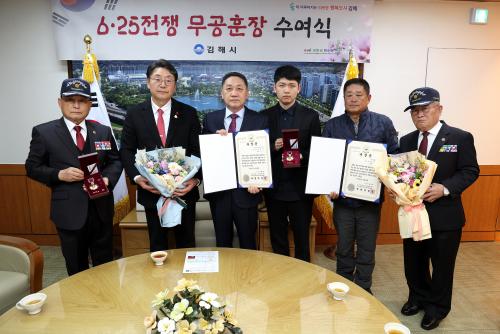 ±èÇØ½Ã, 6¡¤25ÂüÀü¿ë»ç À¯Á·¿¡°Ô È­¶û¹«°øÈÆÀå Àü¼ö