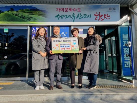 [½Åµ¿¾Æ¹æ¼Û ÇÔ¾È=À̽ŵ¿±âÀÚ]ÇԾȱºÀº 22ÀÏ ¸í´ö°íµîÇб³ Çк¸¸ðȸ(ȸÀå ÀÌÀºÈñ)¿¡¼­ ¾î·Á¿î ÀÌ¿ôµ½±â ¼º±Ý 60¸¸6000¿øÀ» ±âŹÇß´Ù°í ¹àÇû´Ù. À̳¯ ±âŹ½Ä¿¡´Â À¯¿øÁÖ ±º º¹ÁöÁ¤Ã¥°úÀå°ú ¸í´ö°íµîÇб³ Çкθðȸ ÀÌÀºÈñ ȸÀå ¹× °ü°èÀÚµéÀÌ Âü¼®ÇßÀ¸¸ç, ±âŹµÈ ¼º±Ý¡¦