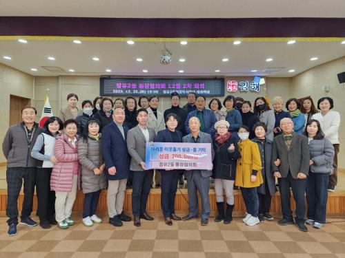 [½Åµ¿¾Æ¹æ¼Û´º½º=ÃÖ¼ÛÈ­±âÀÚ] ÀåÀ¯2µ¿ÇàÁ¤º¹Áö¼¾ÅÍ¿¡¼­´Â 12¿ù 26ÀÏ ÀåÀ¯2µ¿ ÅëÀåÇùÀÇȸ(ȸÀå ÀÌÀçÀº)¿¡¼­ ¿¬¸»À» ¸ÂÀÌÇÏ¿© ¾î·Á¿î ÀÌ¿ôÀ» À§ÇØ »ç¿ëÇØ ´Þ¶ó¸ç Çö±Ý 70¸¸¿øÀ» ±âŹÇß´Ù°í ¹àÇû´Ù. ÀåÀ¯2µ¿ ÅëÀåÇùÀÇȸ´Â ¸Å³â ȸ¿øµéÀÌ ½Ê½ÃÀÏ¹Ý È¸ºñ¸¦ °ÅµÖ ¶ó¸é,¡¦